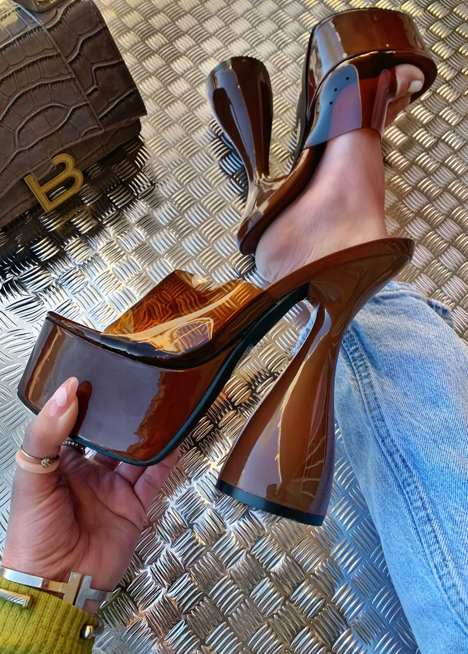 - Sculptured glossy heel
