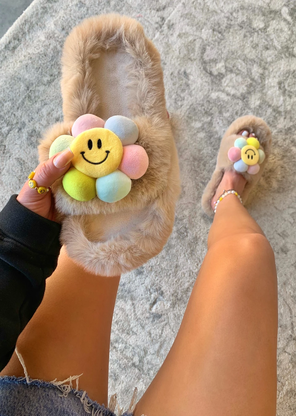 - Plush flower detail
